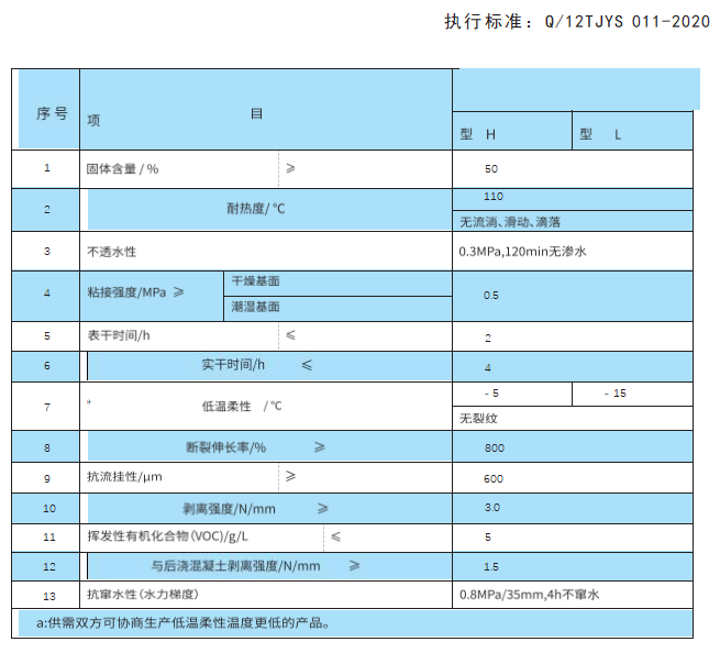 4、抗剥离性能:与混凝土基层粘结性好,剥离时卷材内聚破坏或界面破坏。
