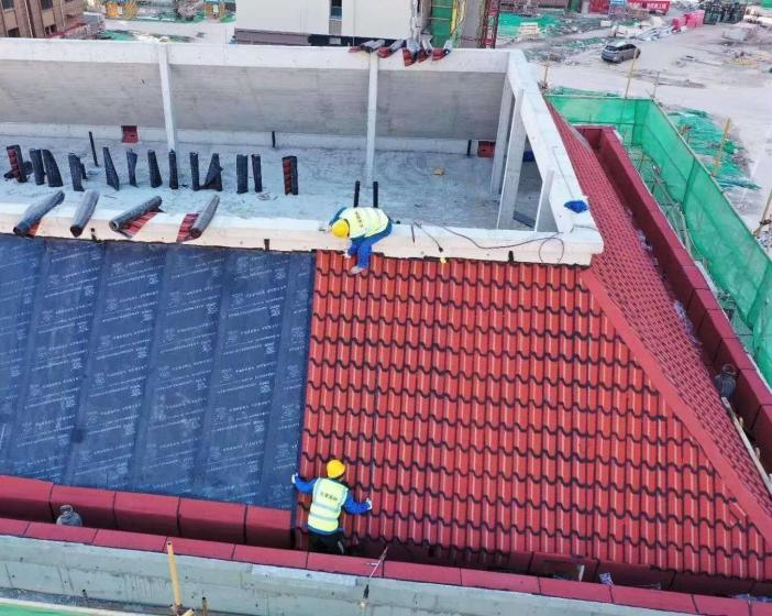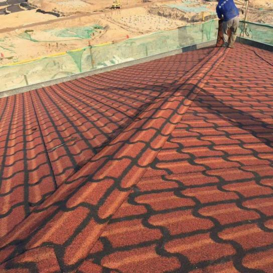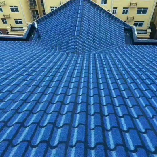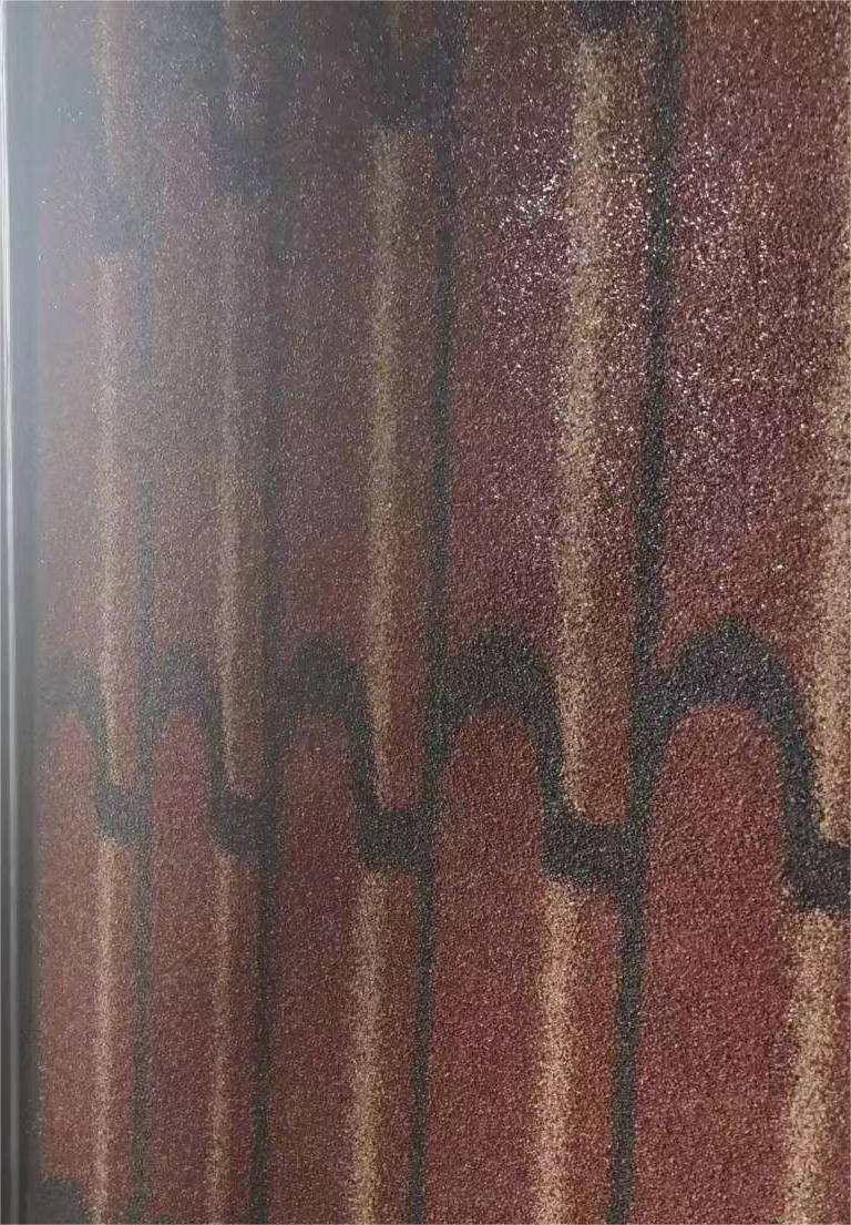 立体多彩屋面防水瓦简称是以聚酯毡为胎基,表面涂盖经特殊工艺制作的优质氧化沥青,上面喷洒保护装 饰多彩高温烧结瓷砂粒,下面撒以隔离材料并涂盖自粘胶制成,它有着优良的耐老化性能。该产品款式多样、 立体感强、颜色丰富,自重轻安全系数髙、防水效果好、装饰效果强、施工方便、工程造价低,是新一代屋面装 饰的升级换代产品。